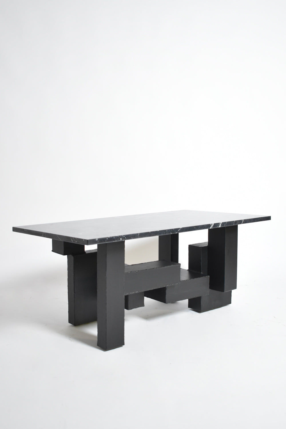 Cubist Iron and Marble Coffee Table, 1980s
