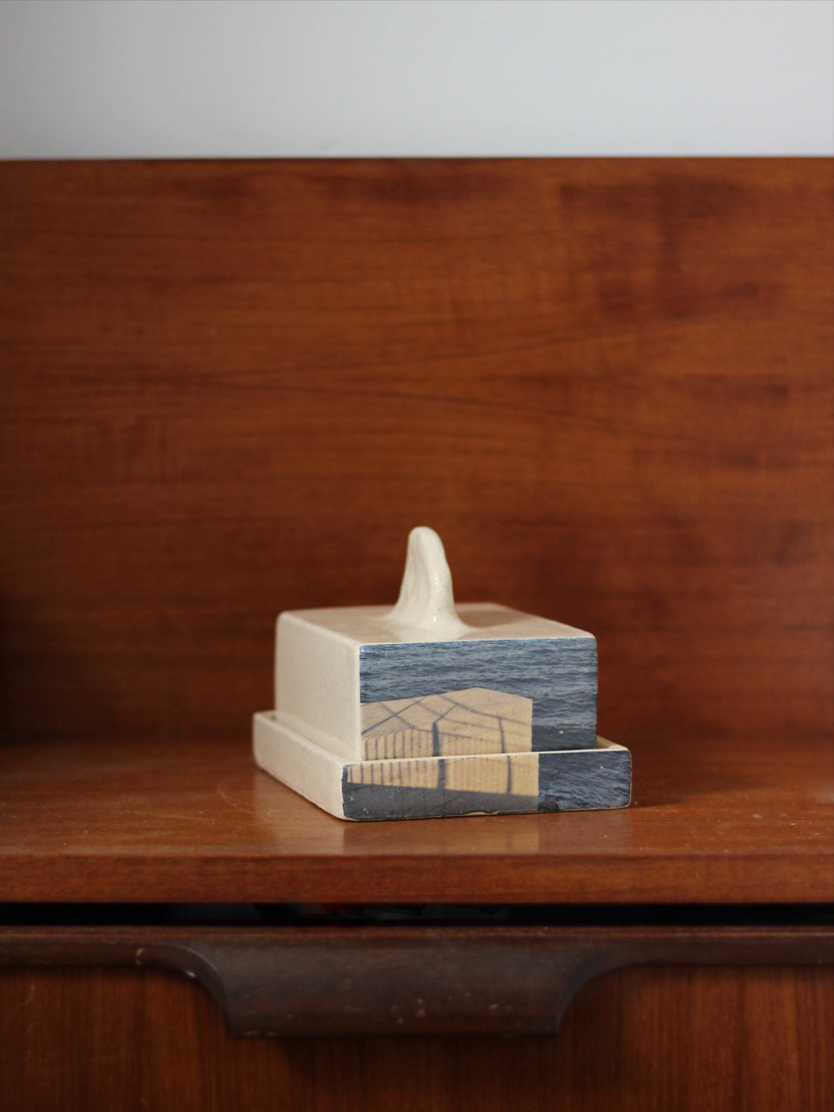 Butter Dish in Stoneware with Marseille Print