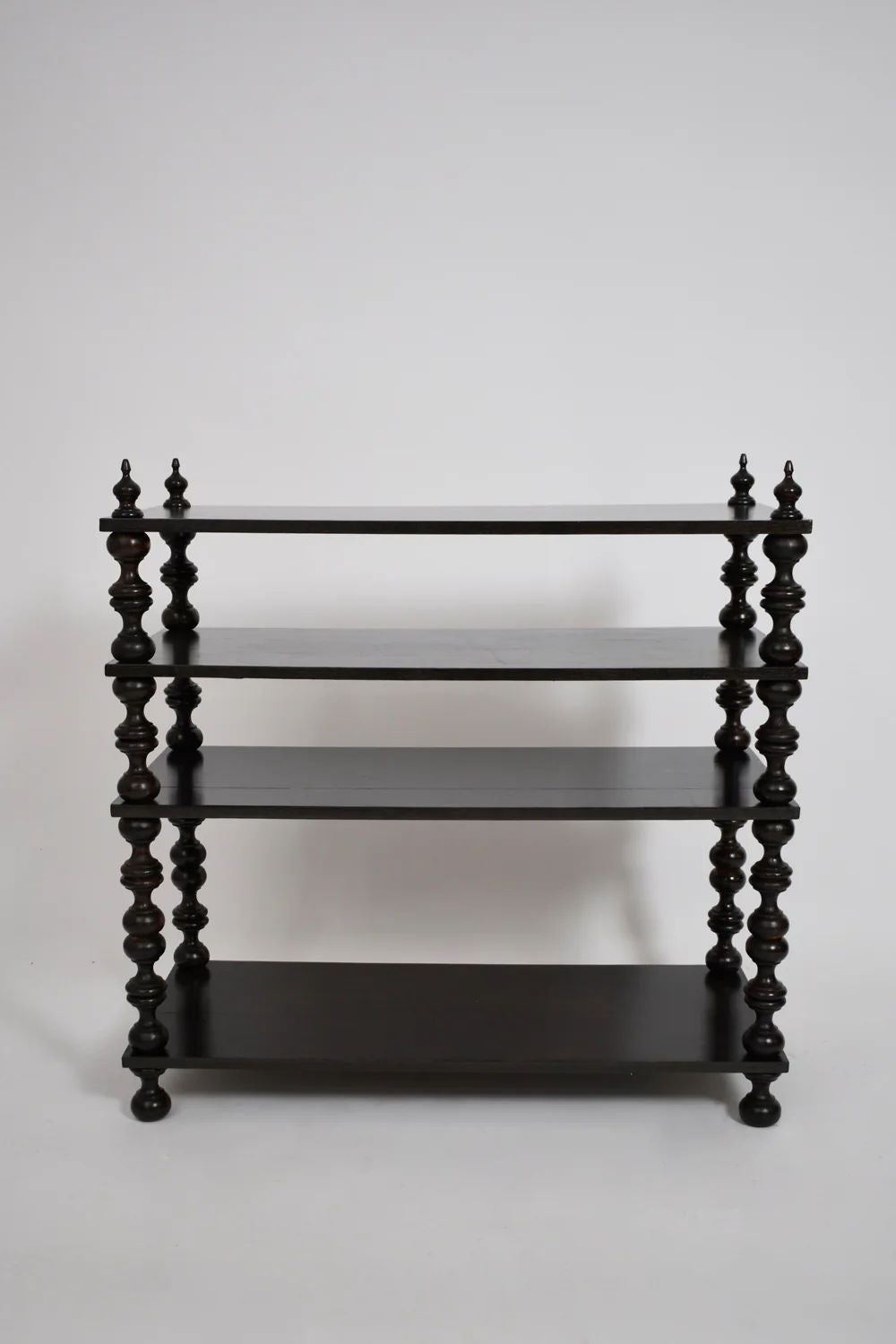Ebonised turned wood bookshelves console, 1950s.