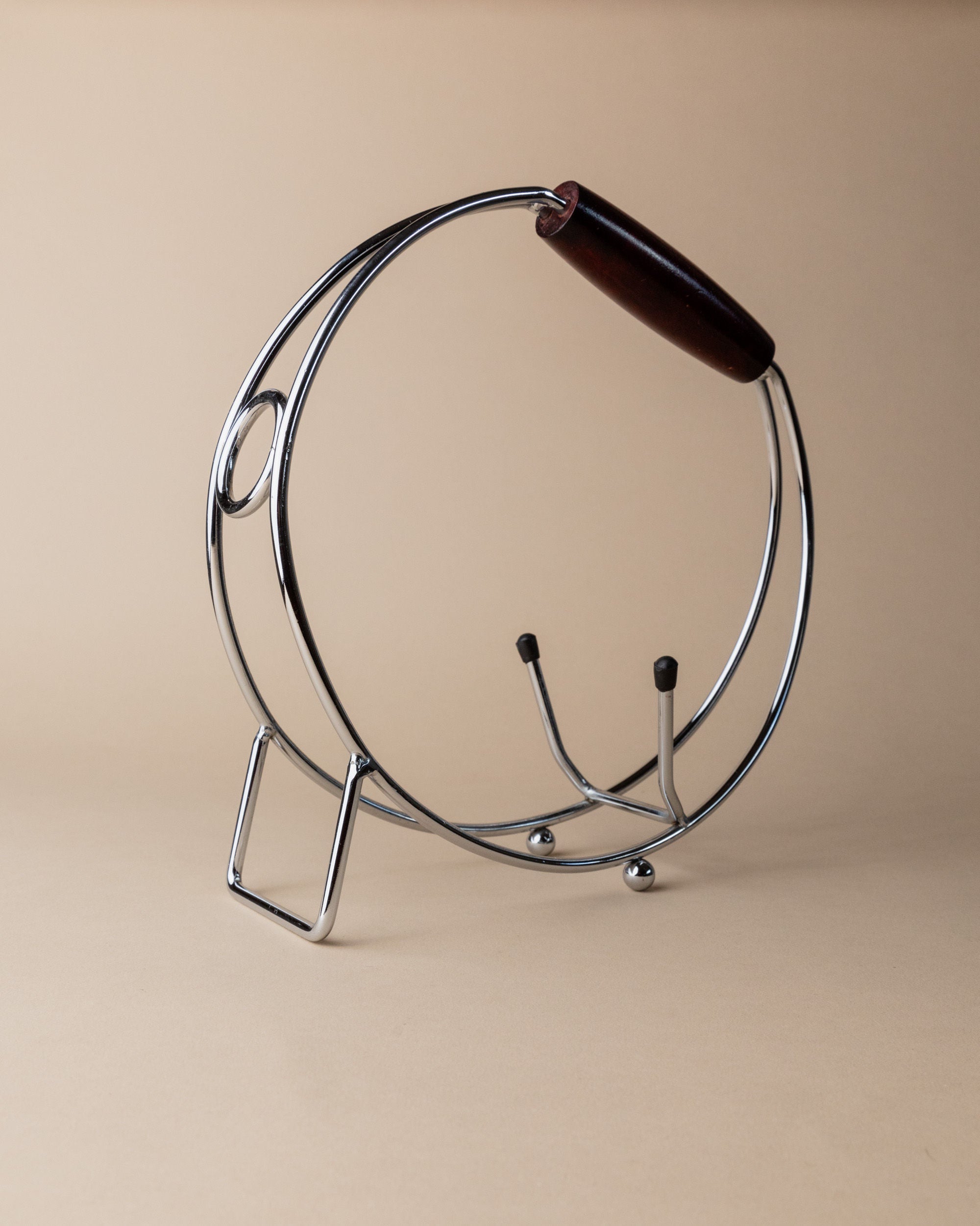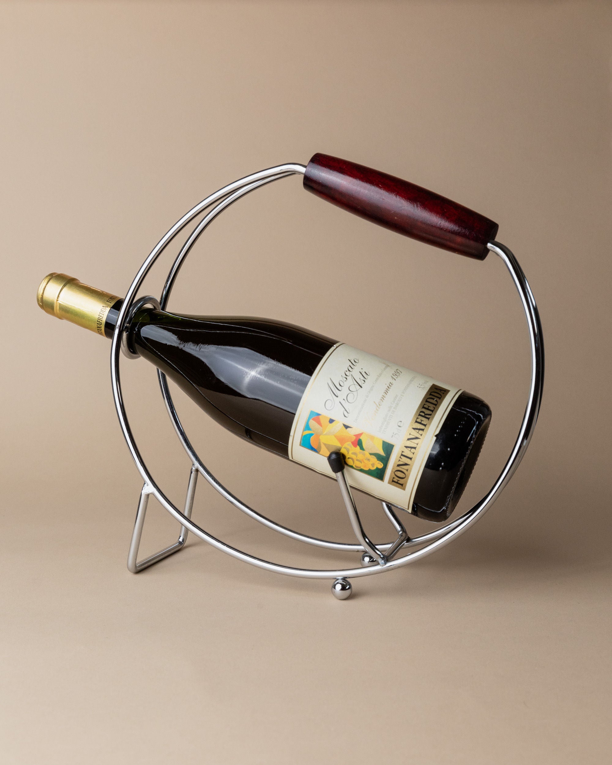 Chrome Bottle Holder with Wood Handle 1980s