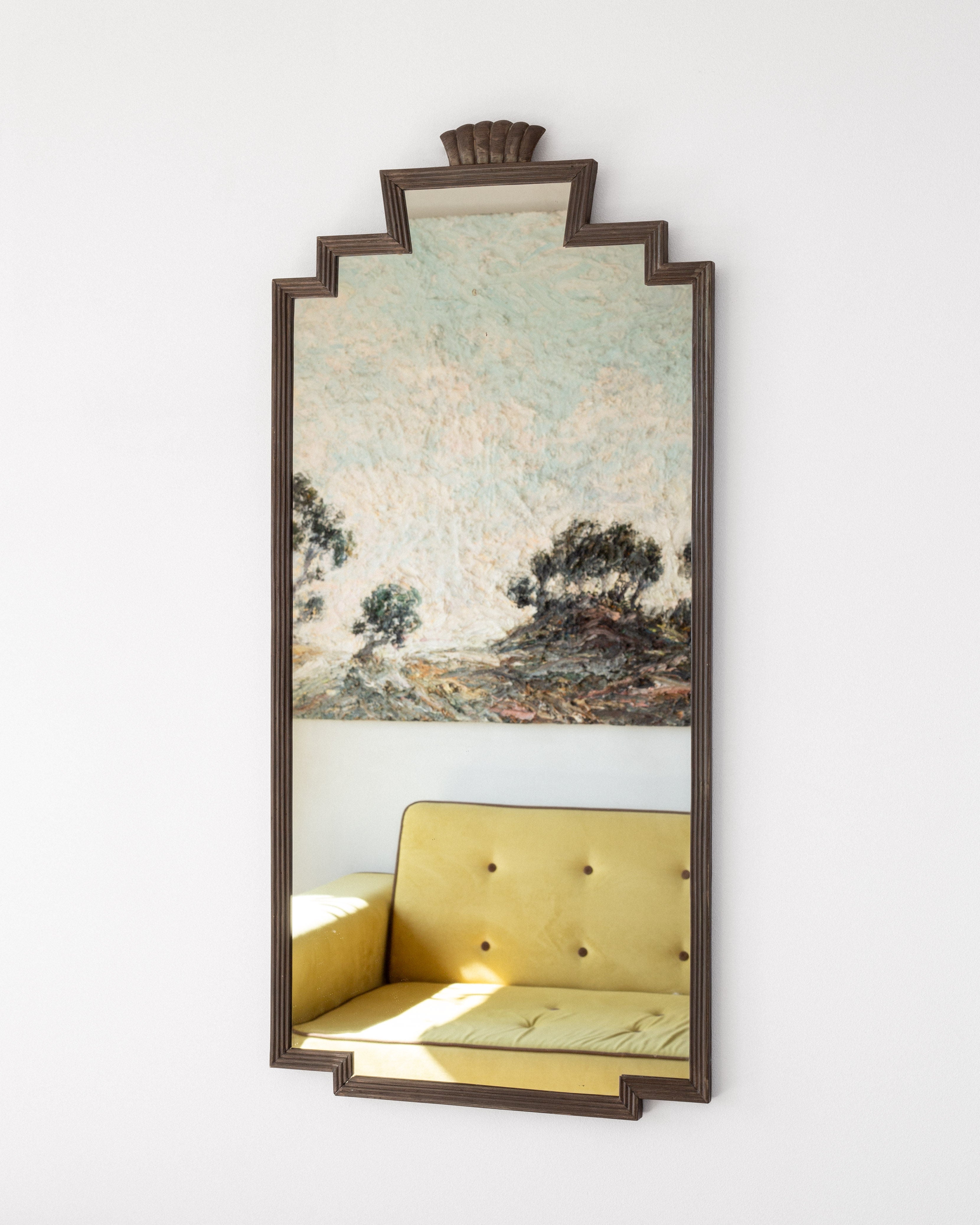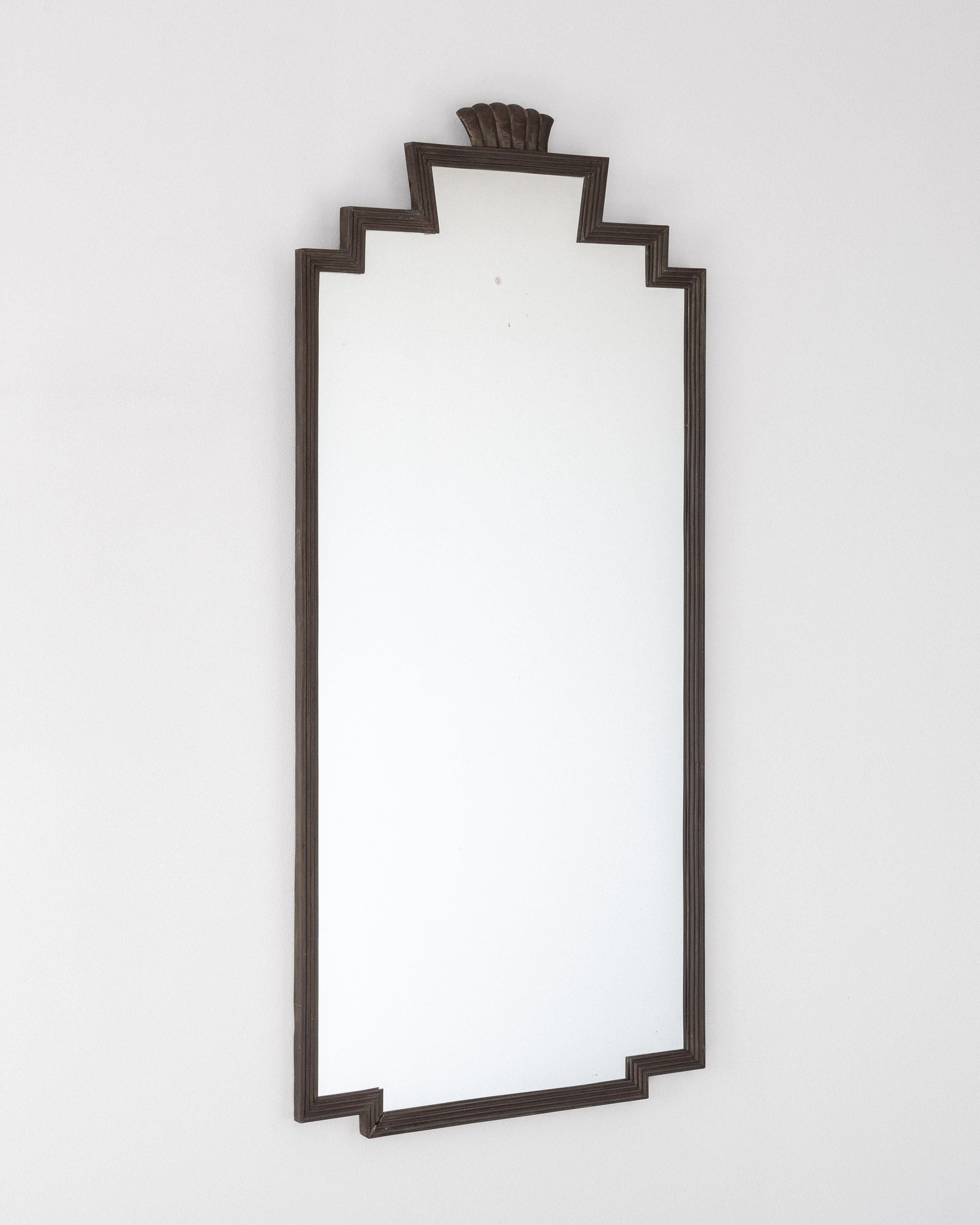 1930s Swedish Art Deco Bronze Mirror with Shell Crown