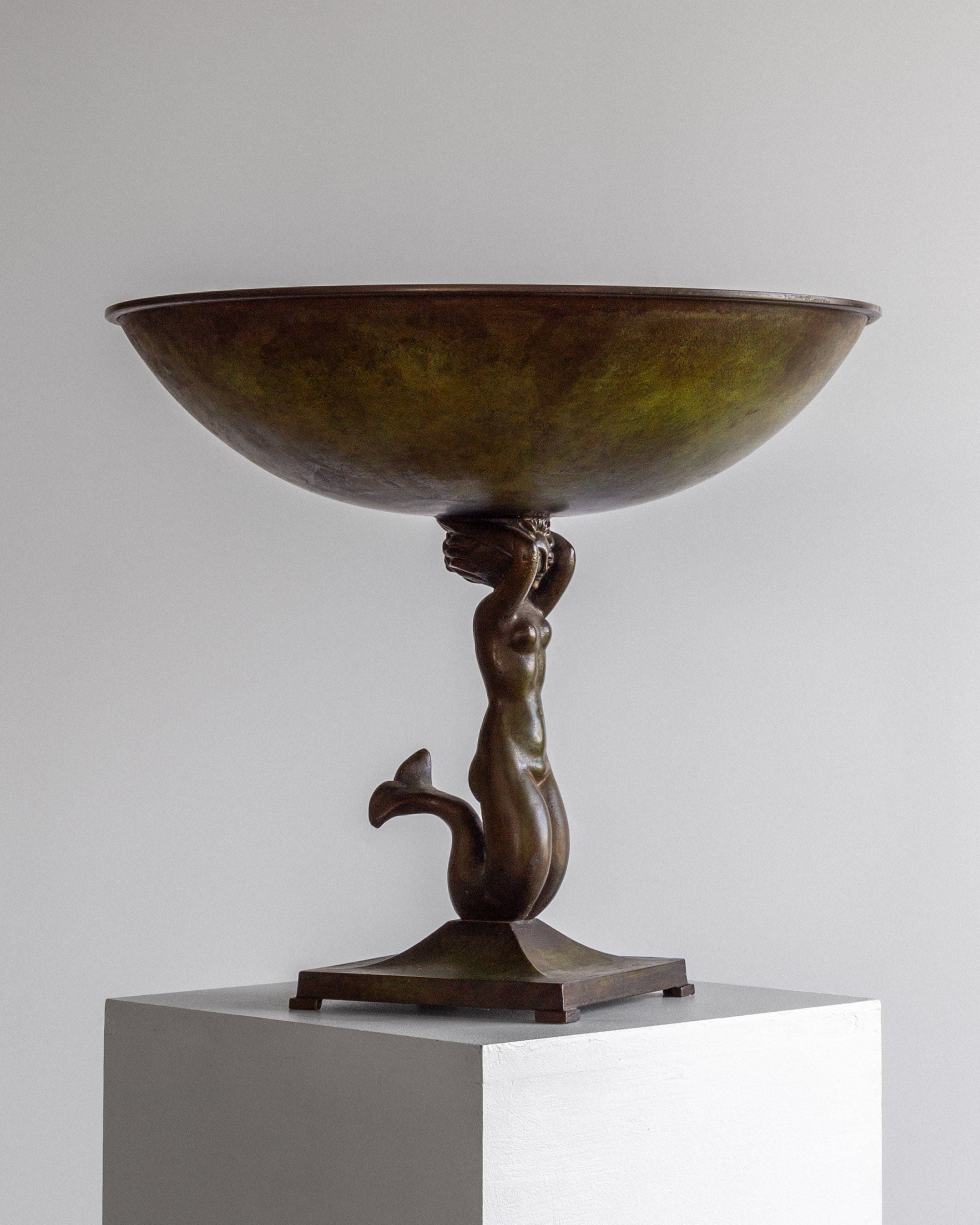 Swedish Art Deco Bronze Bowl with Mermaid, 1930s