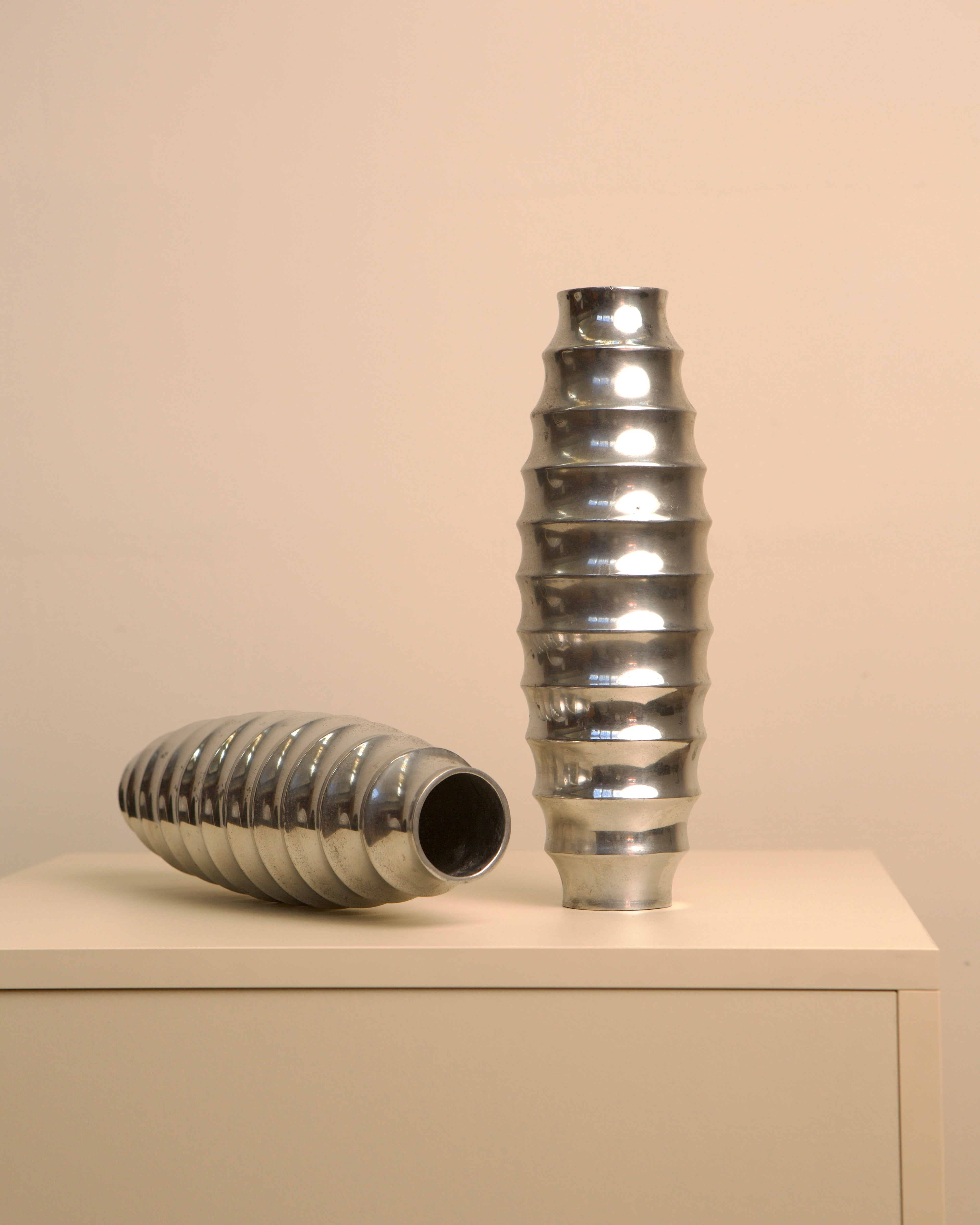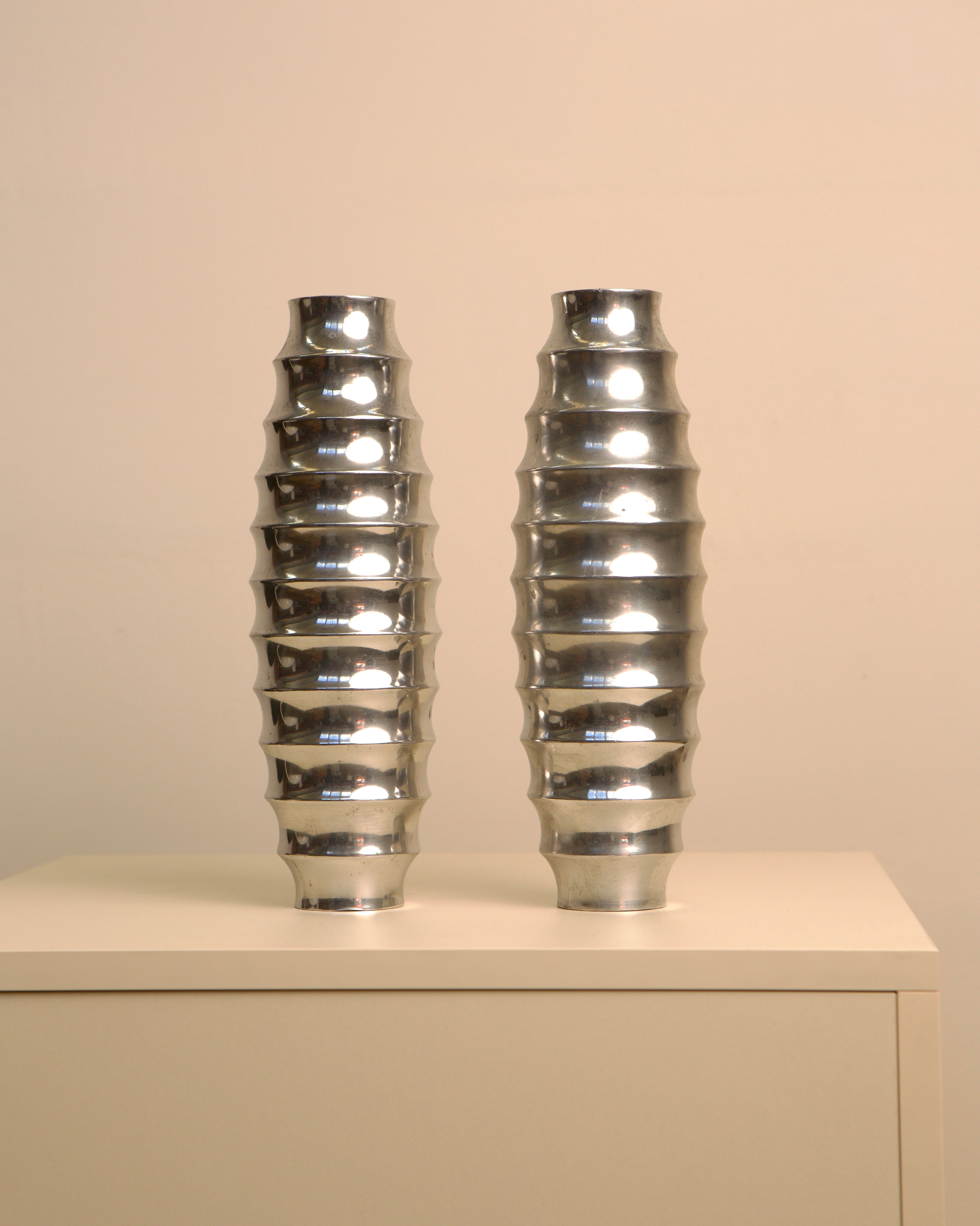 Pair of Vases in Cast Aluminum "Strillé" 80's