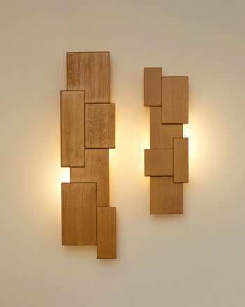 Vintage Set of Two French Oak Wood Sculptural Lamps Wall Lights C. 1980